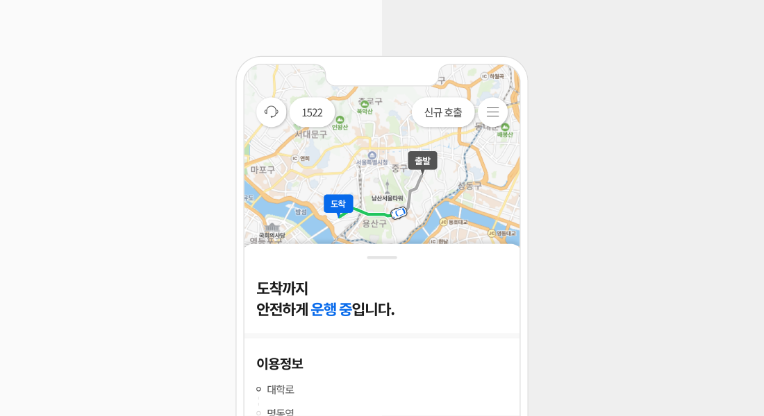 접수부터 운행 완료까지 모든 상황을 앱에서 실시간으로 확인할 수 있습니다.