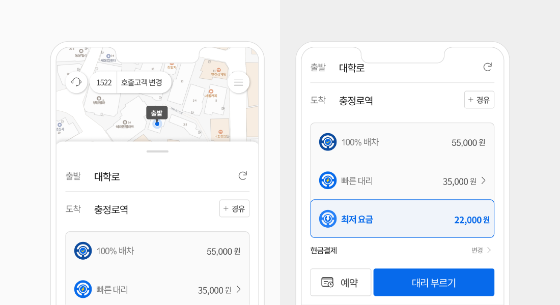 도로 상황을 고려한 최적의 요금을 안내해 드립니다.
